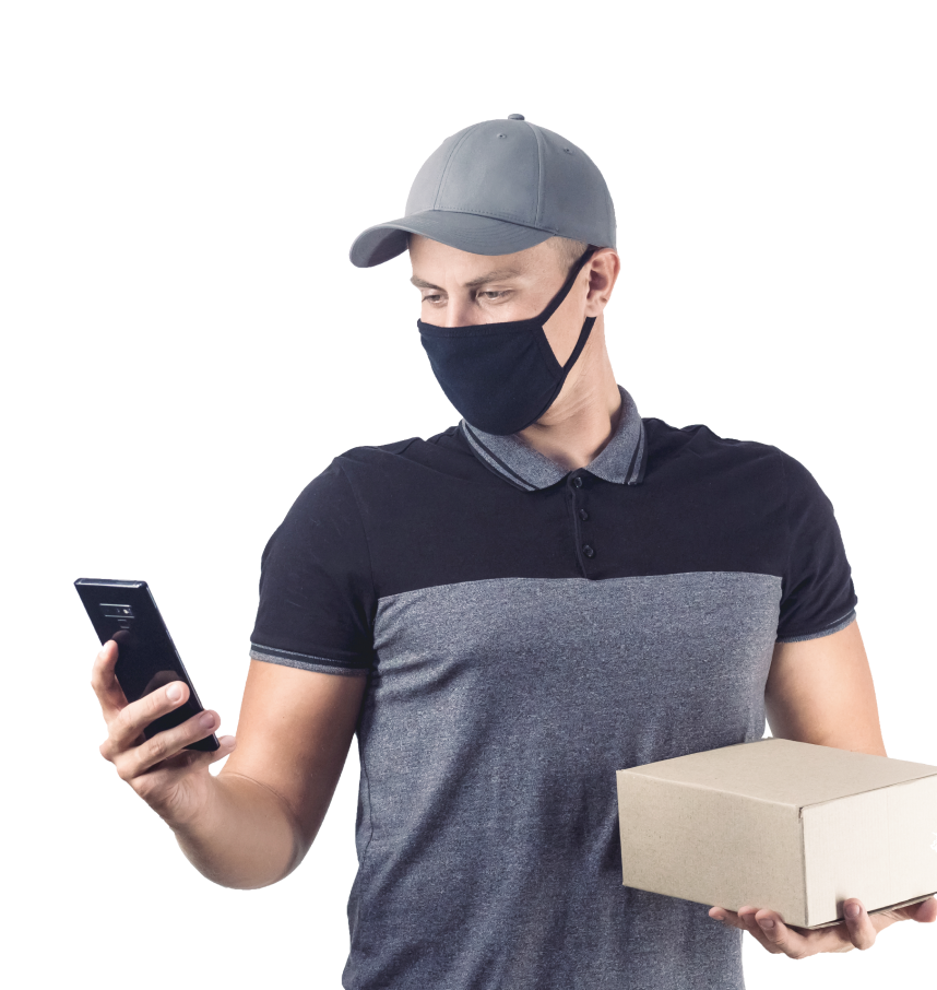 Курьер привозит посылку клиенту, остается на расстоянии 1,5 метра.